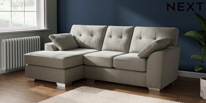 7.2.10 Buy Stamford Buttoned Back Small Sofa Chaise - Left Hand Chunky Texture Dove Large Square Angle - Chrome Metal from the Next UK online shop Click here to use our accessible website