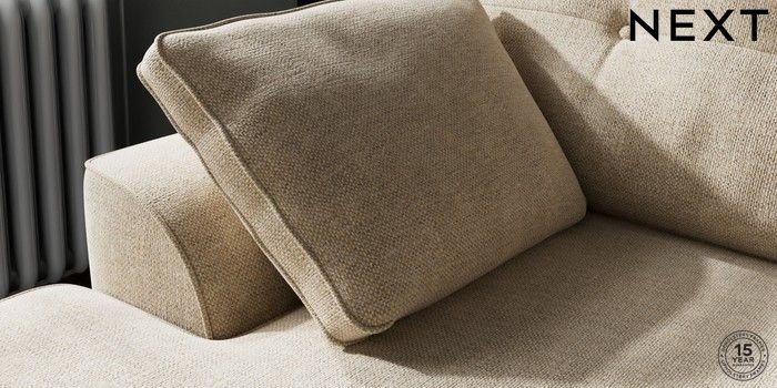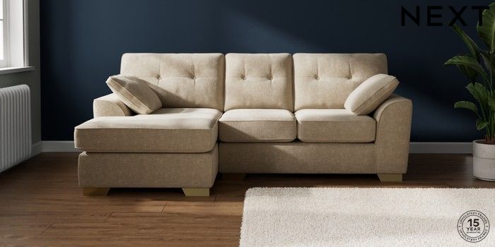 7.2.10 Buy Stamford Buttoned Back Small Sofa Chaise - Left Hand Chunky Weave Cream Large Square Angle - Brushed Brass from the Next UK online shop Click here to use our accessible website