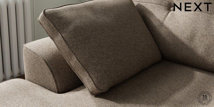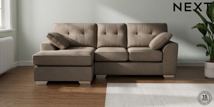 7.2.10 Buy Stamford Buttoned Back Small Sofa Chaise - Left Hand Chunky Weave Dark Natural Large Square Angle - Chrome Metal from the Next UK online shop Click here to use our accessible website