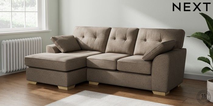 7.2.6 Buy Stamford Buttoned Back Small Sofa Chaise - Left Hand Chunky Weave Dark Natural Large Square Angle - Light from the Next UK online shop Click here to use our accessible website