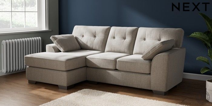 7.2.10 Buy Stamford Buttoned Back Small Sofa Chaise - Left Hand Chunky Weave Dove Grey Large Square Angle - Gunmetal from the Next UK online shop Click here to use our accessible website