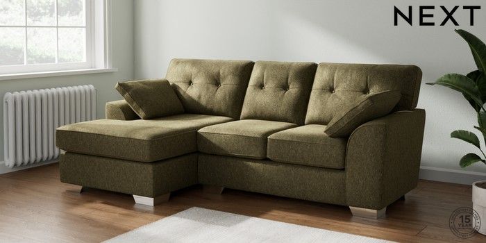 7.2.10 Buy Stamford Buttoned Back Small Sofa Chaise - Left Hand Cotswold Chenille Dark Green Large Square Angle - Chrome Metal from the Next UK online shop Click here to use our accessible website