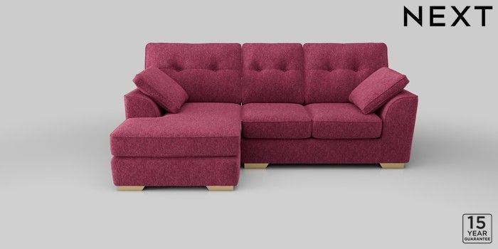 6.12.1 Buy Stamford Buttoned Back Small Sofa Chaise - Left Hand Cotswold Chenille Dark Raspberry Pink Large Square Angle - Brushed Brass from the Next UK online shop Click here to use our accessible website
