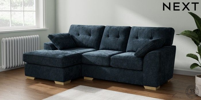 7.2.10 Buy Stamford Buttoned Back Small Sofa Chaise - Left Hand Distressed Velour Midnight Blue Large Square Angle - Light from the Next UK online shop Click here to use our accessible website
