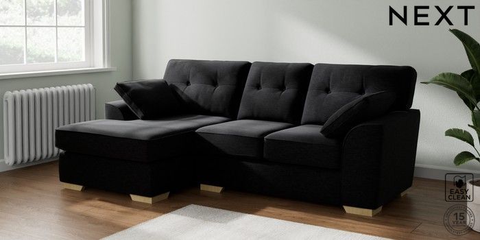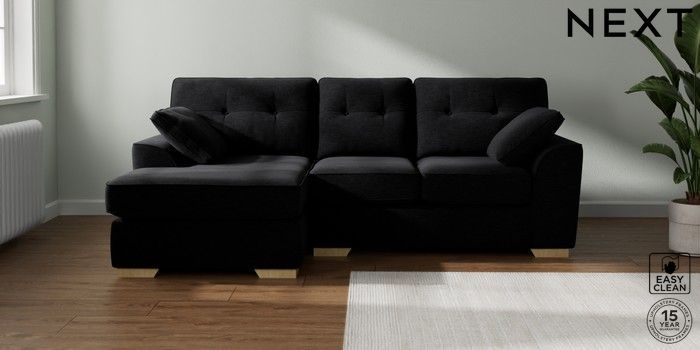 7.2.10 Buy Stamford Buttoned Back Small Sofa Chaise - Left Hand Fine Chenille Easy Clean Black Large Square Angle - Light from the Next UK online shop Click here to use our accessible website