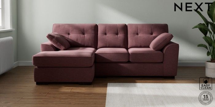 7.2.10 Buy Stamford Buttoned Back Small Sofa Chaise - Left Hand Fine Chenille Easy Clean Mid Mulberry Purple Large Square Angle - Dark from the Next UK online shop Click here to use our accessible website