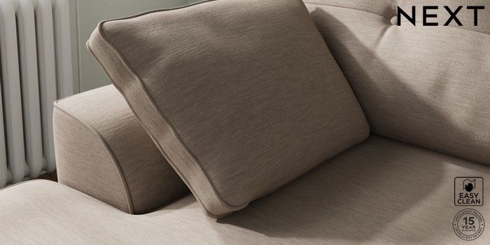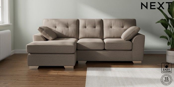 7.2.10 Buy Stamford Buttoned Back Small Sofa Chaise - Left Hand Fine Chenille Easy Clean Mid Taupe Brown Large Square Angle - Chrome Metal from the Next UK online shop Click here to use our accessible website