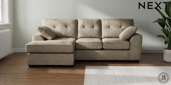 7.3.1 Buy Stamford Buttoned Back Small Sofa Chaise - Left Hand Monza Faux Leather Easy Clean Mink Brown Large Square Angle - Dark from the Next UK online shop Click here to use our accessible website
