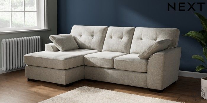 7.2.6 Buy Stamford Buttoned Back Small Sofa Chaise - Left Hand Multi Weave Light Blue Large Square Angle - Dark from the Next UK online shop Click here to use our accessible website