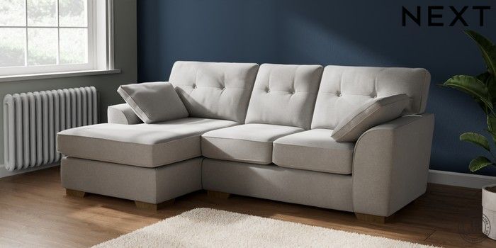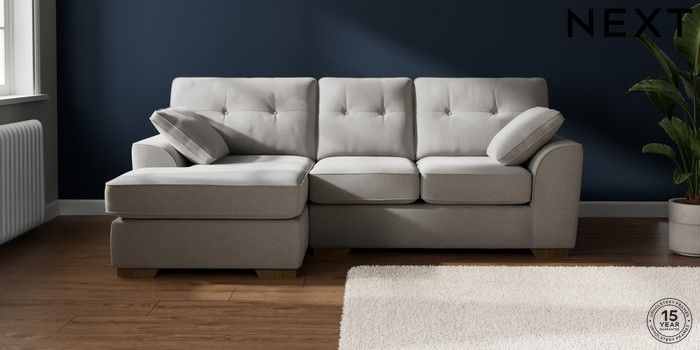 7.2.10 Buy Stamford Buttoned Back Small Sofa Chaise - Left Hand Natural Mix Light Grey Large Square Angle - Mid from the Next UK online shop Click here to use our accessible website