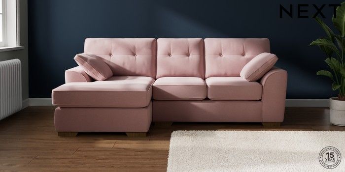 7.2.10 Buy Stamford Buttoned Back Small Sofa Chaise - Left Hand Natural Mix Light Rose Pink Large Square Angle - Mid from the Next UK online shop Click here to use our accessible website