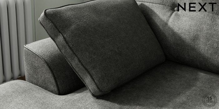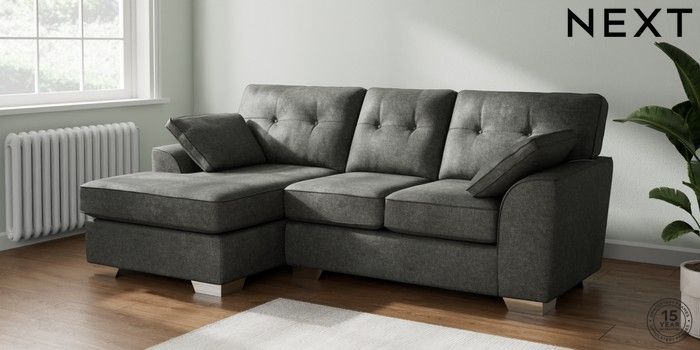 7.2.10 Buy Stamford Buttoned Back Small Sofa Chaise - Left Hand Plush Chenille Dark Grey Large Square Angle - Chrome Metal from the Next UK online shop Click here to use our accessible website