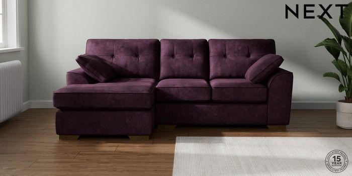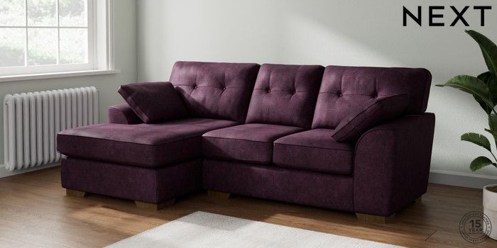 7.2.10 Buy Stamford Buttoned Back Small Sofa Chaise - Left Hand Plush Chenille Dark Plum Purple Large Square Angle - Mid from the Next UK online shop Click here to use our accessible website