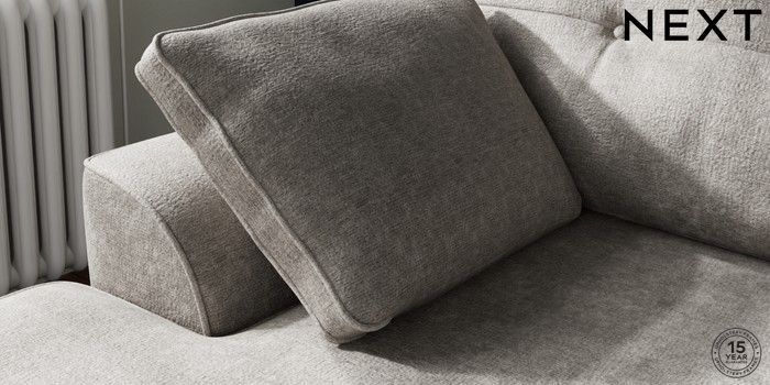 7.2.10 Buy Stamford Buttoned Back Small Sofa Chaise - Left Hand Plush Chenille Light Grey Large Square Angle - Chrome Metal from the Next UK online shop Click here to use our accessible website