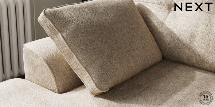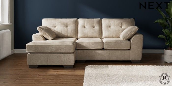 7.2.10 Buy Stamford Buttoned Back Small Sofa Chaise - Left Hand Plush Chenille Light Natural Large Square Angle - Gunmetal from the Next UK online shop Click here to use our accessible website