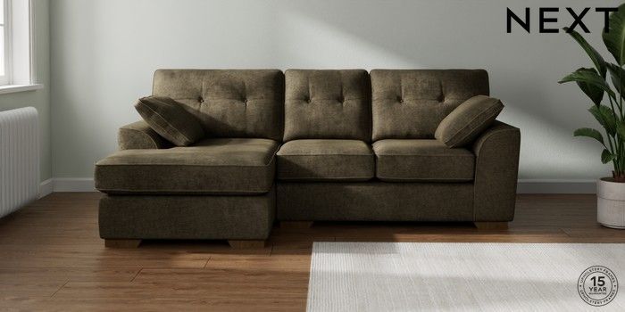 7.2.6 Buy Stamford Buttoned Back Small Sofa Chaise - Left Hand Plush Chenille Moss Green Large Square Angle - Mid from the Next UK online shop Click here to use our accessible website