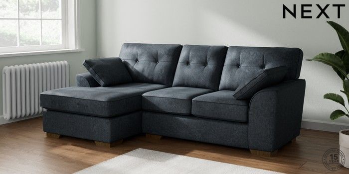 7.2.6 Buy Stamford Buttoned Back Small Sofa Chaise - Left Hand Plush Chenille Slate Blue Large Square Angle - Mid from the Next UK online shop Click here to use our accessible website