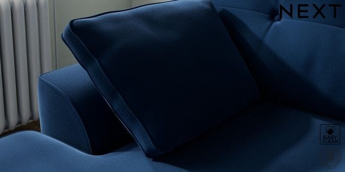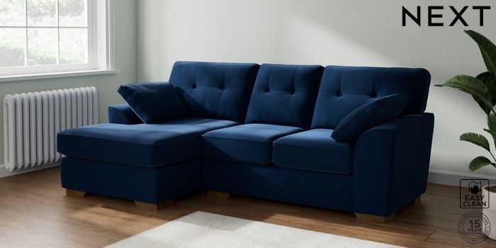 7.2.10 Buy Stamford Buttoned Back Small Sofa Chaise - Left Hand Plush Velvet Easy Clean Navy Blue Large Square Angle - Mid from the Next UK online shop Click here to use our accessible website