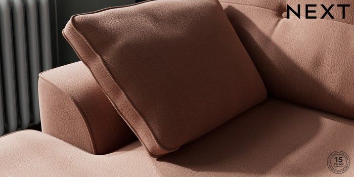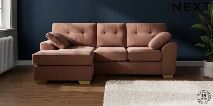7.2.10 Buy Stamford Buttoned Back Small Sofa Chaise - Left Hand Relaxed Linen Look Light Rust Brown Large Square Angle - Brushed Brass from the Next UK online shop Click here to use our accessible website