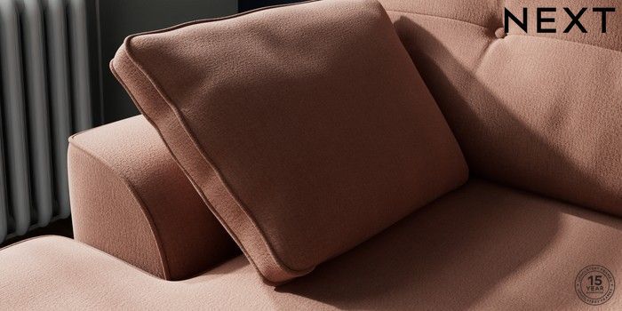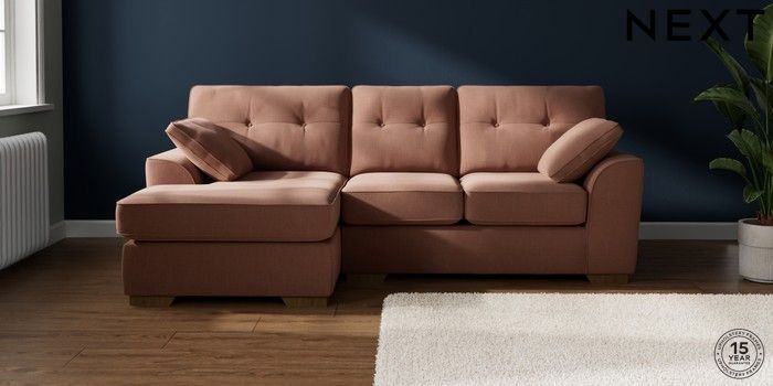 7.2.10 Buy Stamford Buttoned Back Small Sofa Chaise - Left Hand Relaxed Linen Look Light Rust Brown Large Square Angle - Mid from the Next UK online shop Click here to use our accessible website