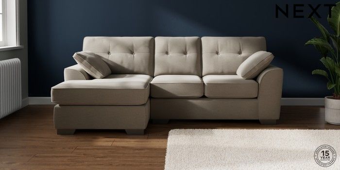 7.2.10 Buy Stamford Buttoned Back Small Sofa Chaise - Left Hand Ripple Chenille Light Natural Large Square Angle - Gunmetal from the Next UK online shop Click here to use our accessible website