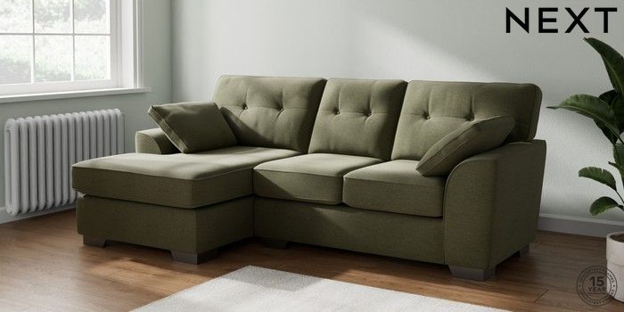 7.2.10 Buy Stamford Buttoned Back Small Sofa Chaise - Left Hand Ripple Chenille Mid Moss Green Large Square Angle - Gunmetal from the Next UK online shop Click here to use our accessible website