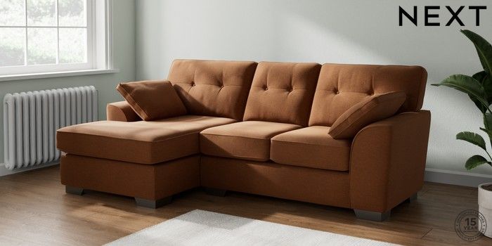 7.2.10 Buy Stamford Buttoned Back Small Sofa Chaise - Left Hand Ripple Chenille Mid Rust Brown Large Square Angle - Gunmetal from the Next UK online shop Click here to use our accessible website