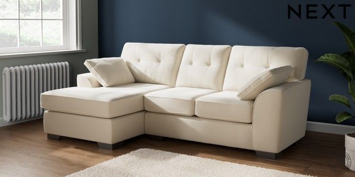 7.2.10 Buy Stamford Buttoned Back Small Sofa Chaise - Left Hand Ripple Chenille Oyster Large Square Angle - Gunmetal from the Next UK online shop Click here to use our accessible website