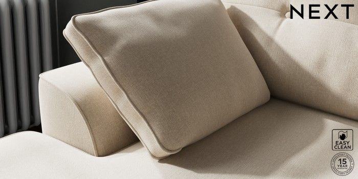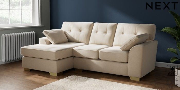 7.2.10 Buy Stamford Buttoned Back Small Sofa Chaise - Left Hand Tweedy Blend Easy Clean Oyster Large Square Angle - Brushed Brass from the Next UK online shop Click here to use our accessible website