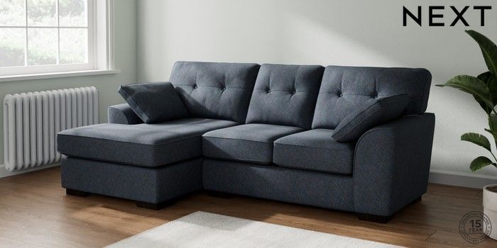 7.2.10 Buy Stamford Buttoned Back Small Sofa Chaise - Left Hand Tweedy Chenille Navy Blue Large Square Angle - Dark from the Next UK online shop Click here to use our accessible website