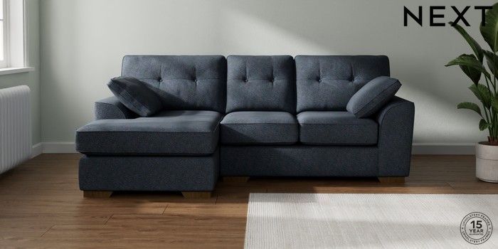 7.2.10 Buy Stamford Buttoned Back Small Sofa Chaise - Left Hand Tweedy Chenille Navy Blue Large Square Angle - Mid from the Next UK online shop Click here to use our accessible website