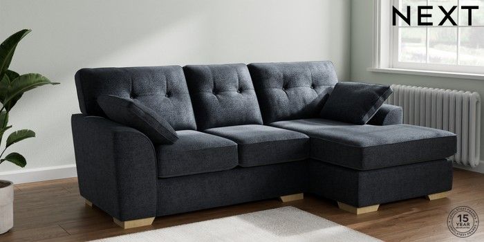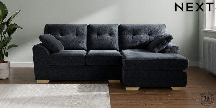 7.2.10 Buy Stamford Buttoned Back Small Sofa Chaise - Right Hand Boucle Chenille Dark Slate Blue Large Square Angle - Light from the Next UK online shop Click here to use our accessible website
