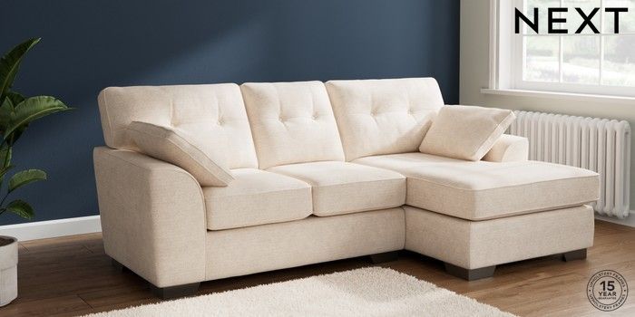 7.2.10 Buy Stamford Buttoned Back Small Sofa Chaise - Right Hand Boucle Chenille Oyster Large Square Angle - Gunmetal from the Next UK online shop Click here to use our accessible website