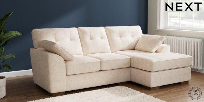 7.2.10 Buy Stamford Buttoned Back Small Sofa Chaise - Right Hand Boucle Chenille Oyster Large Square Angle - Mid from the Next UK online shop Click here to use our accessible website