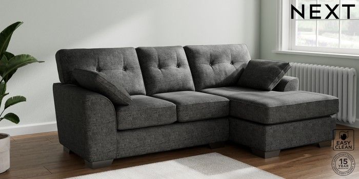 6.12.1 Buy Stamford Buttoned Back Small Sofa Chaise - Right Hand Boucle Weave Easy Clean Charcoal Grey Large Square Angle - Gunmetal from the Next UK online shop Click here to use our accessible website