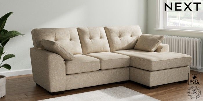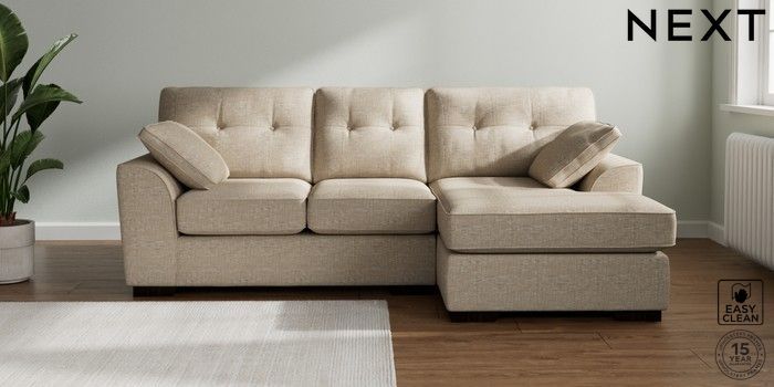 7.2.10 Buy Stamford Buttoned Back Small Sofa Chaise - Right Hand Boucle Weave Easy Clean Dark Natural Large Square Angle - Dark from the Next UK online shop Click here to use our accessible website