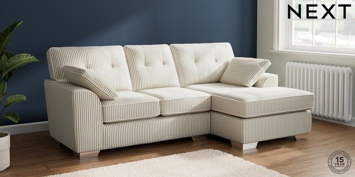 7.3.1 Buy Stamford Buttoned Back Small Sofa Chaise - Right Hand Chenille Stripe Moss Green Large Square Angle - Chrome Metal from the Next UK online shop Click here to use our accessible website