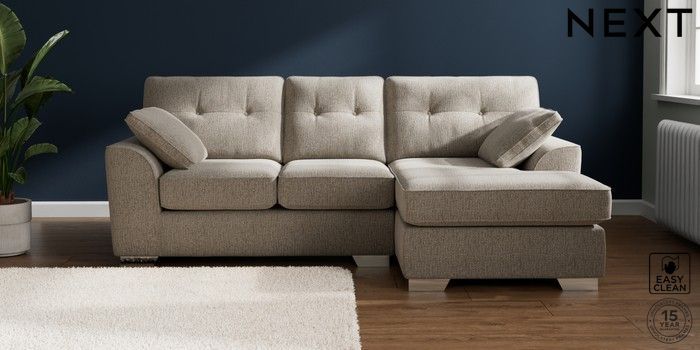 7.2.10 Buy Stamford Buttoned Back Small Sofa Chaise - Right Hand Chunky Boucle Easy Clean Dove Large Square Angle - Chrome Metal from the Next UK online shop Click here to use our accessible website