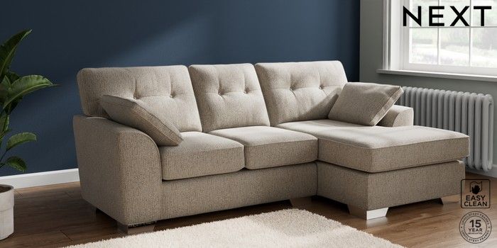 6.12.1 Buy Stamford Buttoned Back Small Sofa Chaise - Right Hand Chunky Boucle Easy Clean Dove Large Square Angle - Chrome Metal from the Next UK online shop Click here to use our accessible website