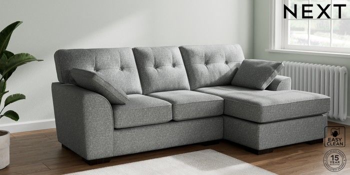 7.2.10 Buy Stamford Buttoned Back Small Sofa Chaise - Right Hand Chunky Boucle Easy Clean Mid Grey Large Square Angle - Dark from the Next UK online shop Click here to use our accessible website