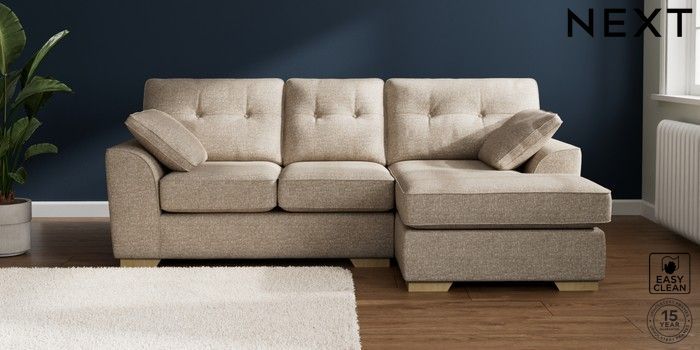 7.2.10 Buy Stamford Buttoned Back Small Sofa Chaise - Right Hand Chunky Boucle Easy Clean Mid Natural Large Square Angle - Light from the Next UK online shop Click here to use our accessible website