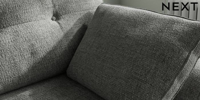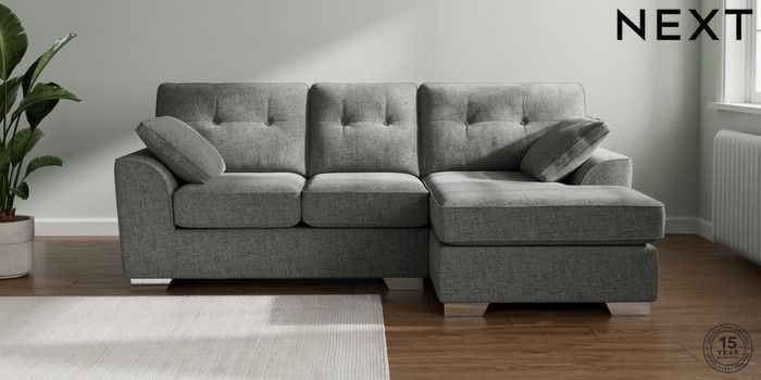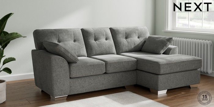 7.2.10 Buy Stamford Buttoned Back Small Sofa Chaise - Right Hand Chunky Chenille Dark Grey Large Square Angle - Chrome Metal from the Next UK online shop Click here to use our accessible website