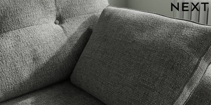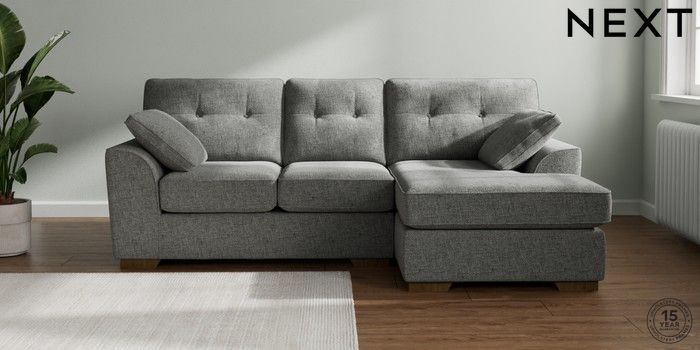 7.2.10 Buy Stamford Buttoned Back Small Sofa Chaise - Right Hand Chunky Chenille Dark Grey Large Square Angle - Mid from the Next UK online shop Click here to use our accessible website