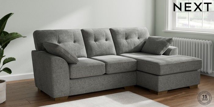 6.12.1 Buy Stamford Buttoned Back Small Sofa Chaise - Right Hand Chunky Chenille Dark Grey Large Square Angle - Mid from the Next UK online shop Click here to use our accessible website