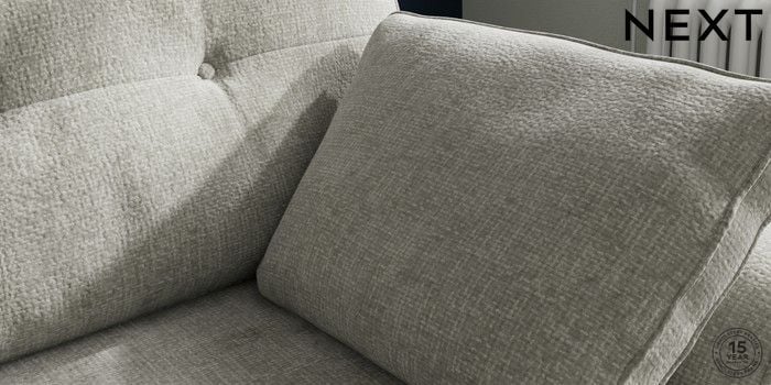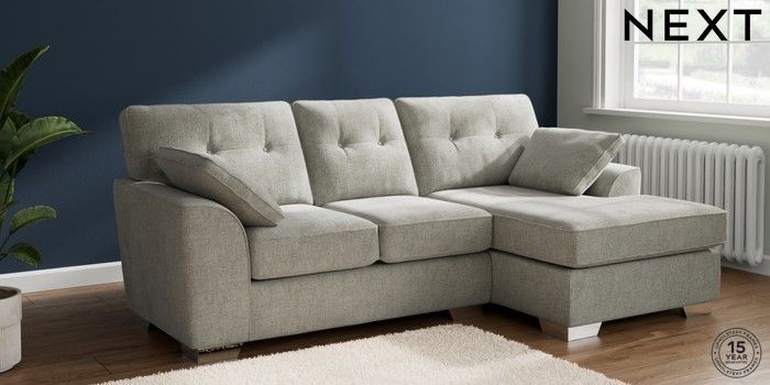 7.2.10 Buy Stamford Buttoned Back Small Sofa Chaise - Right Hand Chunky Chenille Light Grey Large Square Angle - Chrome Metal from the Next UK online shop Click here to use our accessible website