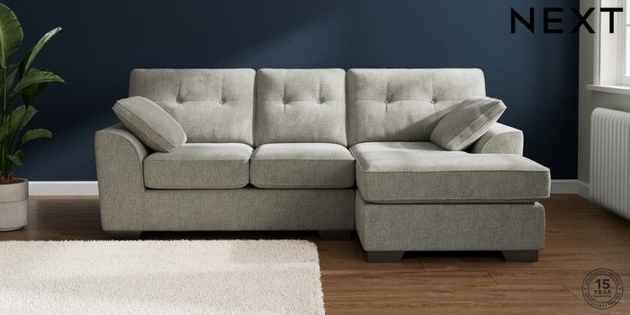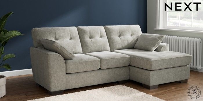 7.2.10 Buy Stamford Buttoned Back Small Sofa Chaise - Right Hand Chunky Chenille Light Grey Large Square Angle - Gunmetal from the Next UK online shop Click here to use our accessible website