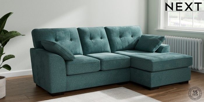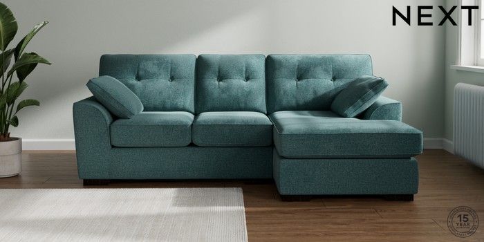 7.2.10 Buy Stamford Buttoned Back Small Sofa Chaise - Right Hand Chunky Chenille Mid Teal Green Large Square Angle - Dark from the Next UK online shop Click here to use our accessible website