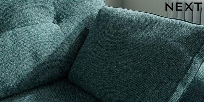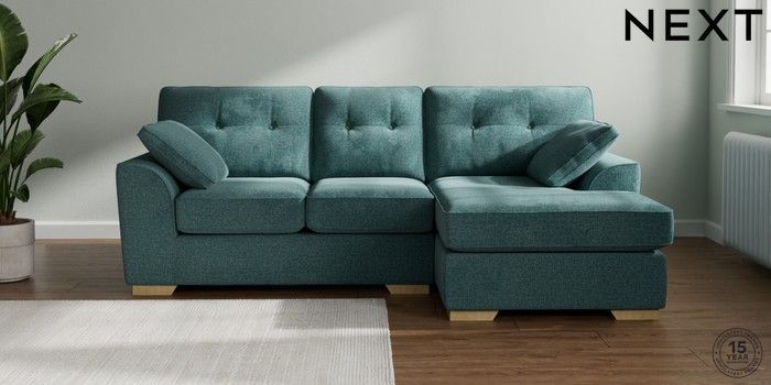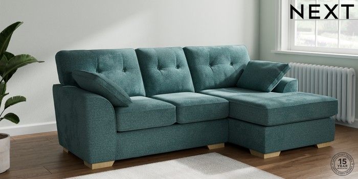 7.2.10 Buy Stamford Buttoned Back Small Sofa Chaise - Right Hand Chunky Chenille Mid Teal Green Large Square Angle - Light from the Next UK online shop Click here to use our accessible website