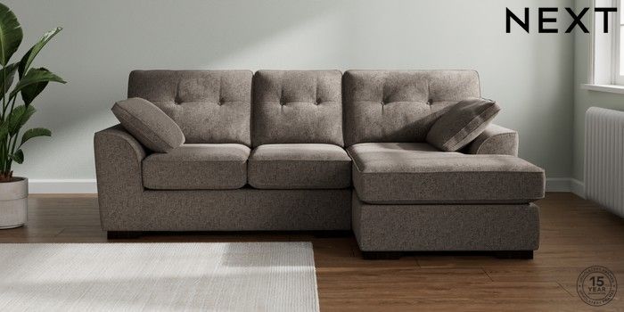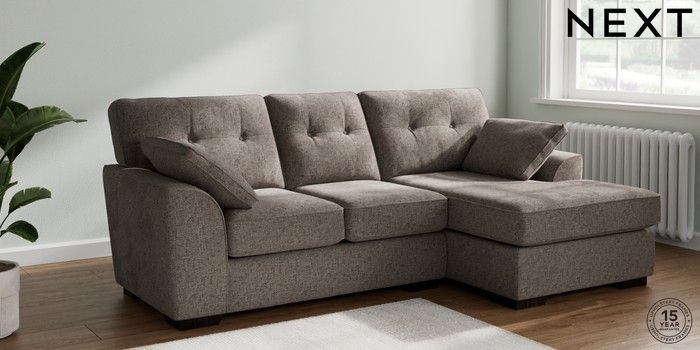 7.2.10 Buy Stamford Buttoned Back Small Sofa Chaise - Right Hand Chunky Chenille Mink Brown Large Square Angle - Dark from the Next UK online shop Click here to use our accessible website
