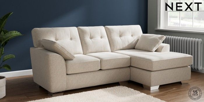 7.2.10 Buy Stamford Buttoned Back Small Sofa Chaise - Right Hand Chunky Marl Oyster Large Square Angle - Chrome Metal from the Next UK online shop Click here to use our accessible website